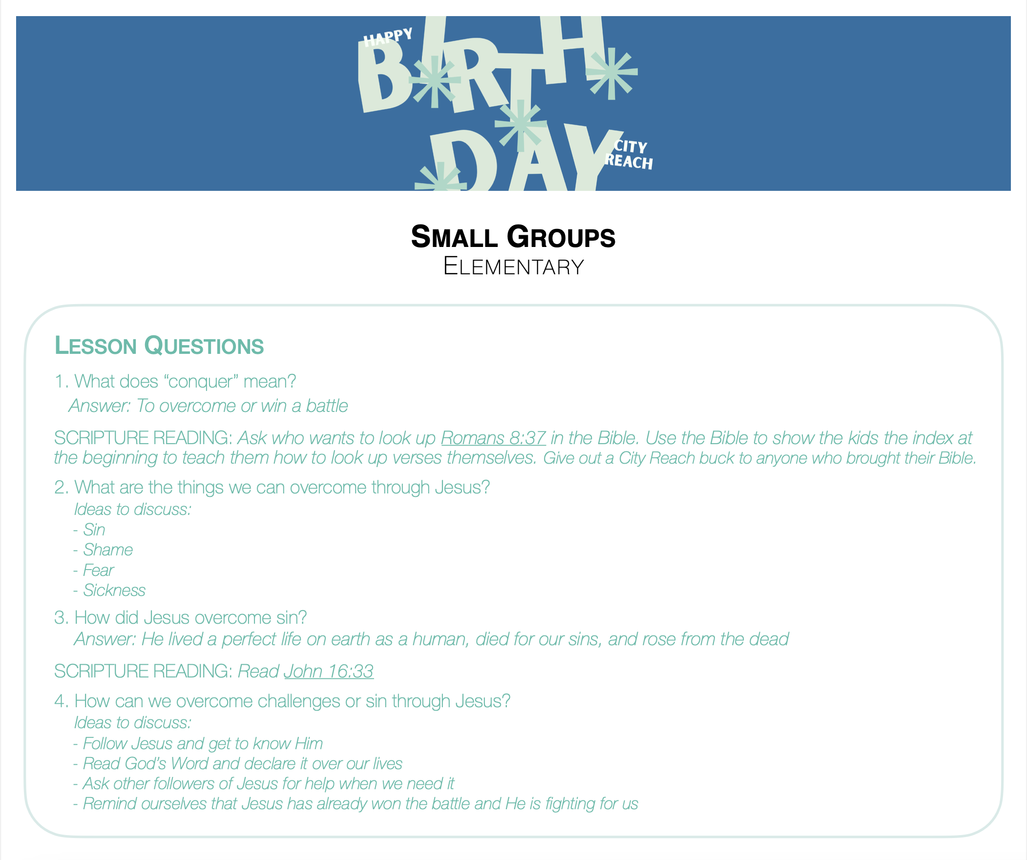 City Reach Kids takes place during our regular service times.
